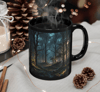 Enchanted Forest Coffee Mug, Black Coffee Cups, Nature Lover Gift, Cozy Home Decor, Gothic Mug, Fantasy Drinkware, Whimsy Mug