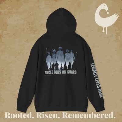 A hoodie of spirit, strength, and remembrance, the 'Ancestors on Guard' design declares that you are guided by wisdom, protected by presence, and carried by strength. Perfect for those looking to honor their heritage and stay cozy on chilly days. Ideal for individuals interested in ancestral pride and connection. Relevant to holidays like Day of the Dead or personal celebrations.