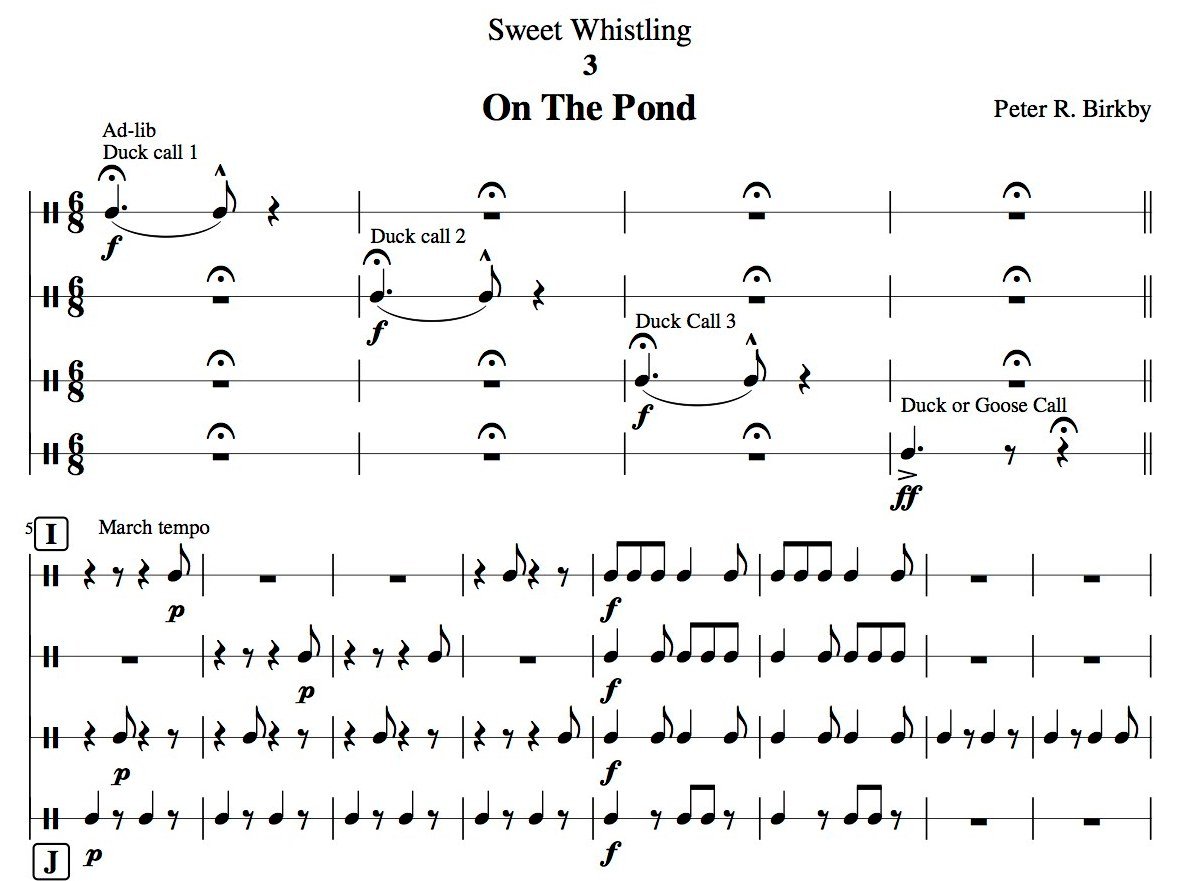 Accessible rhythms for beginner to intermediate quartet of players. Easy for transport of instruments and good for a pop-up percussion ensemble in any venue. See the Mixed Metals Percussion Ensemble perform a couple of movements at https://www.youtube.com/watch?v=jyrpyaHMtqk