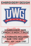 UWG Wolves Football NCAA Team Logo Embroidery Designs, NCAA West Georgia Wolves Machine Embroidery Files, NCAA Logo embroidery designs, Ncaa West Georgia Logo, Digital Download