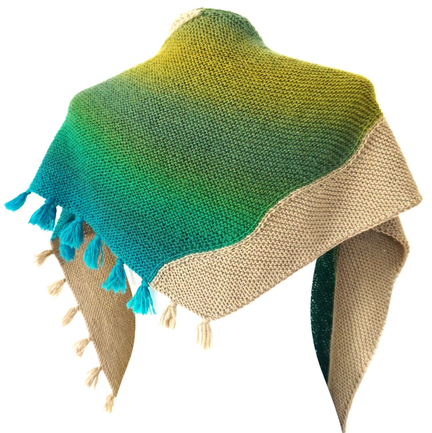 Bubble Net is an asymmetrical triangular shawl knit on the bias from one tip to the opposite edge. The shawl grows one stitch every right side row along the top edge.