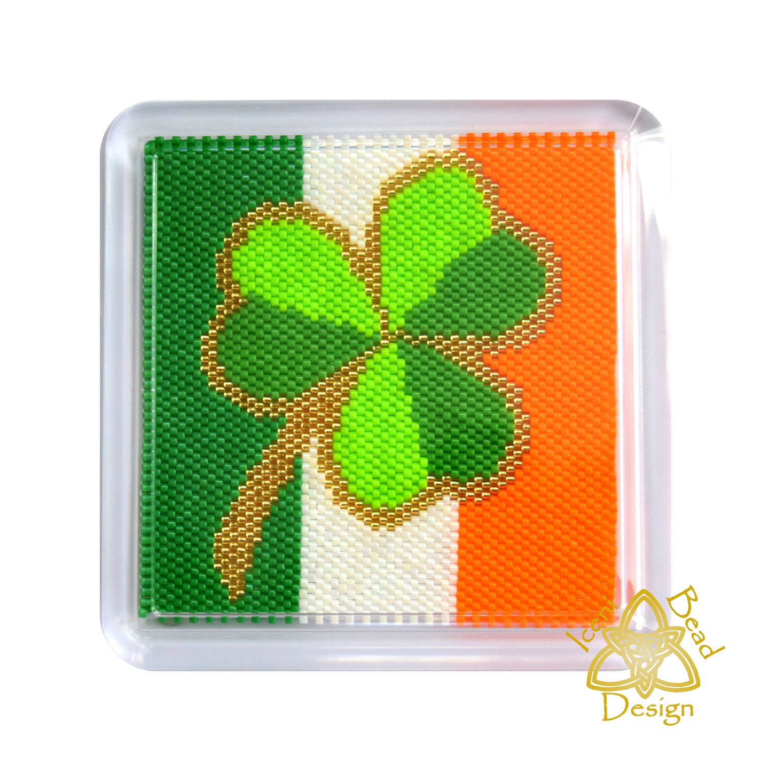 Irish Shamrock Peyote stitch Beaded Coaster