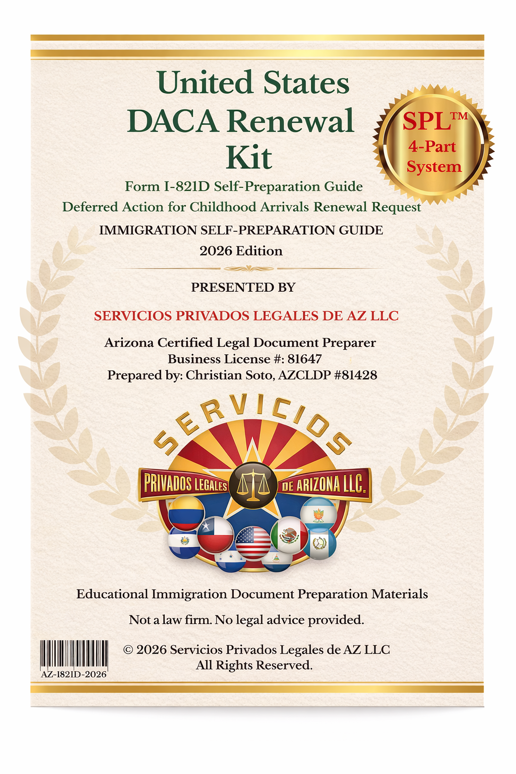 By purchasing this product, you understand that this kit is an educational self-preparation guide designed to help individuals understand how to prepare and organize the DACA renewal application package, including: