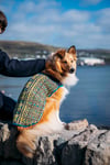 Vertical panel jumpers and cardigans are some of the most often made and worn styles by Shetlanders so why should dogs be left out? The central panel of a small Norwegian Star motif is flanked by a rope-type motif and then easily repeated cross-seeding. All the Fair Isle is knit in the round with a steek, it’s then surrounded by an i-cord edging and 1x1 rib neck flap and strap. Named after an old Shetland Fishing boat it will make any canine friend a Shetland-worthy seadog.