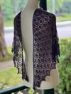 This is a triangle shaped shawl, there are 2 charts for the lace design and fully written row-by-row instructions are provided so you can choose which you prefer to work from.