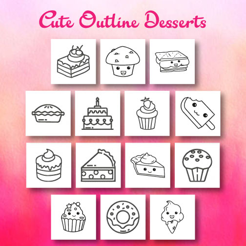 Machine embroidery design bundle, cute outline desserts, INSTANT DOWNLOAD