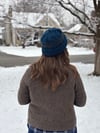 The Cat Tracks Cap is inspired by weaving and natural dye classes at The Little Loomhouse in Louisville, Kentucky, a weaving education center and workshop since 1939. Frank Lloyd Wright described The Little Loomhouse as “three board and batten cabins set in the dignity of nature under the mighty oaks of Kenwood Hill.” At the Loomhouse, the sun filters through the trees to create dappled light that sparks creative magic.