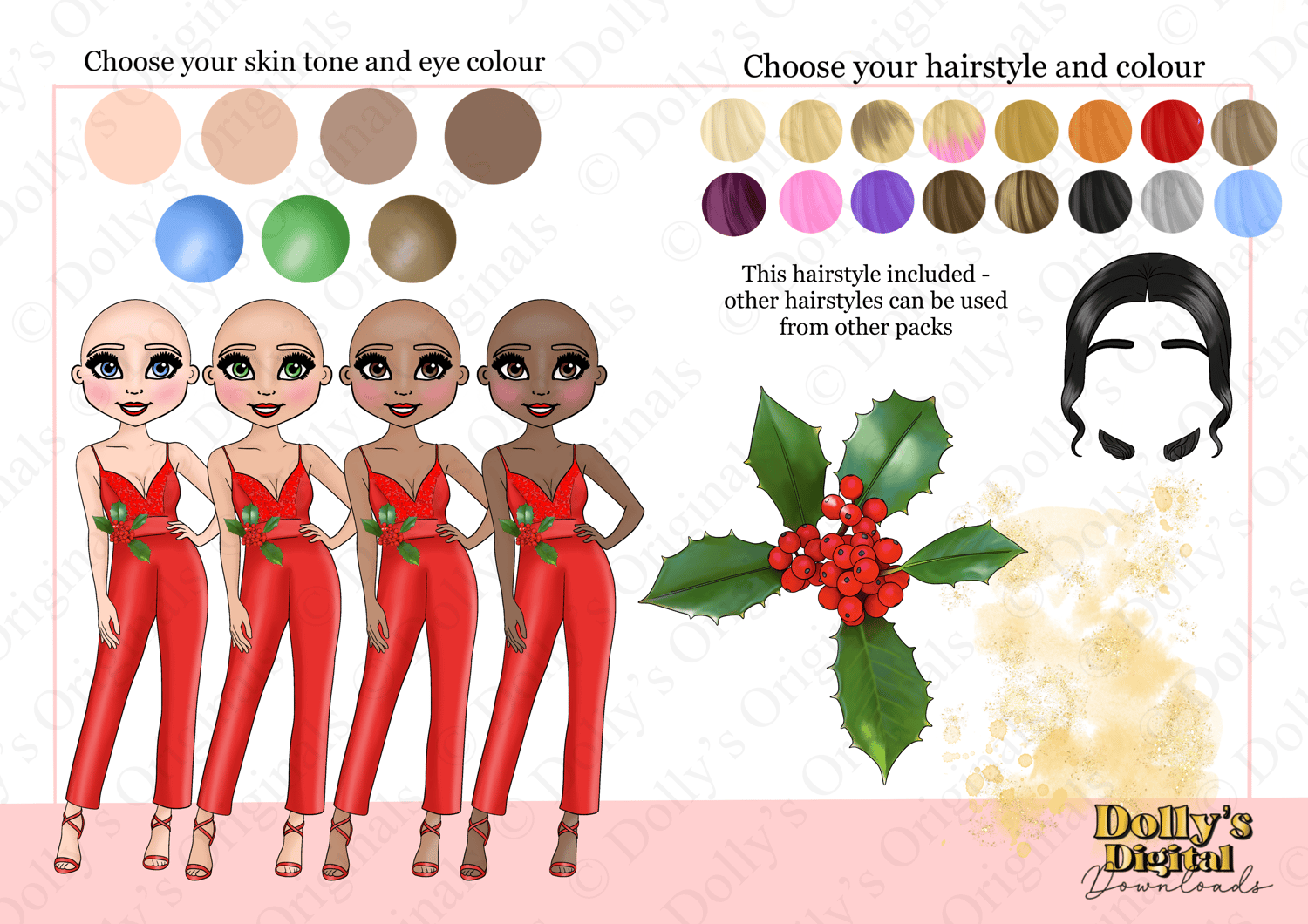 Instant digital download of our Birth Flower December Holly Doll Character Bundle PNG (34 PNG’s)