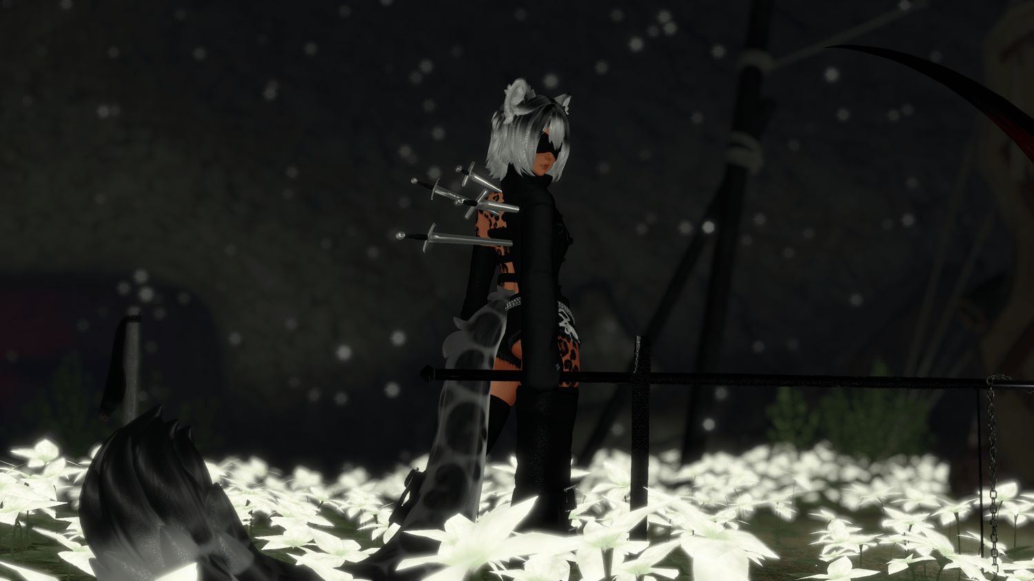 - EXTRA: Gogoloco, contacts for headpat w/ toggle to disable, likes counter noseboop, paw prints, scythe (grabbable with right hand), flowtoy, finger pointer, 18+ menu