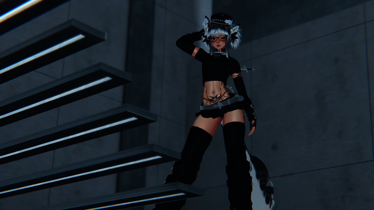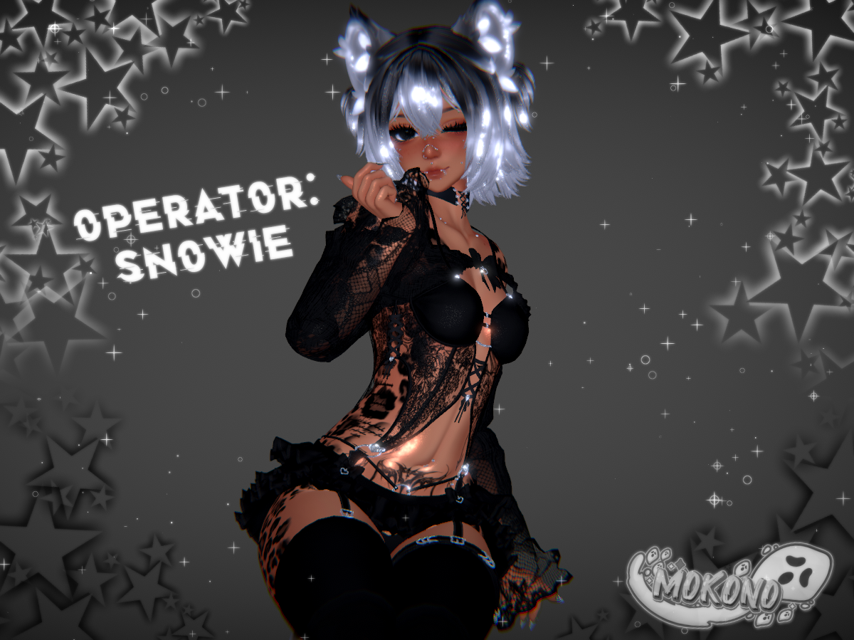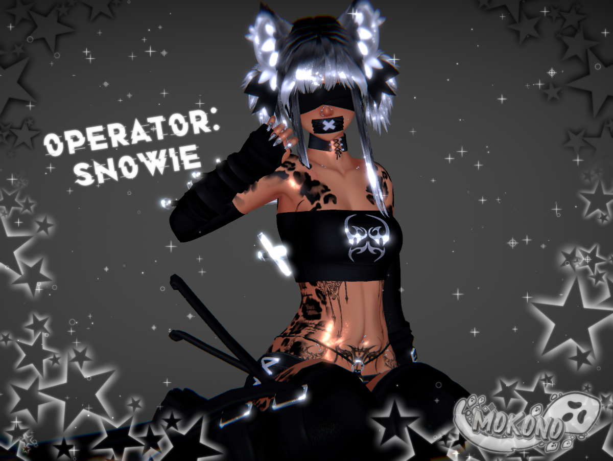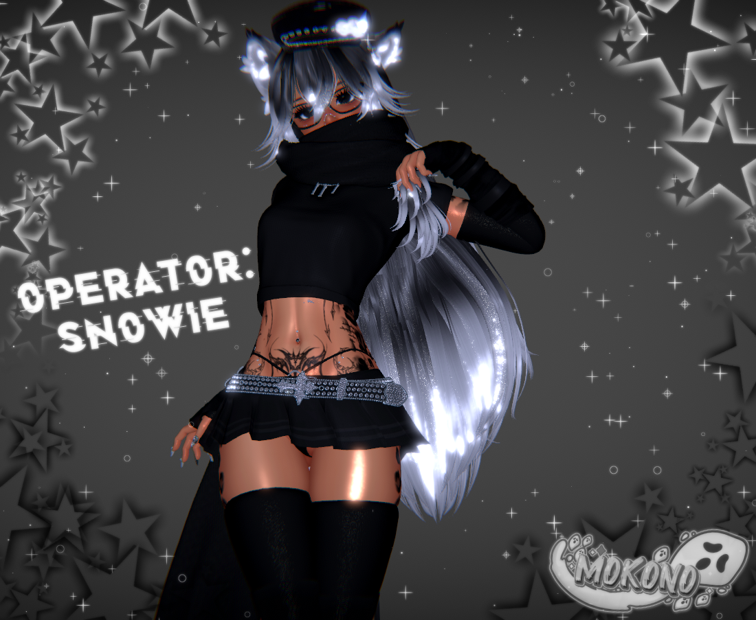 | Head- Sleepy (edited by me, no reuse) | Body- Zinpia (edited by me, no reuse) | Hairs- Tuesdayrain, Nymphee, Luvr | Ears/tail- Dacozygremlin | Textures- Me, Ezra, Nessy, Miruu(in server), Meyah, Zeit, Blenity | Arm warmer1, Top1- Miruu | Belt- untitledfbx | Choker- Ducc | Piercings- Me, Kijiio | Nails- Ssukiii | Glasses- Google | Hat, scarf, top3- Holoexe | Leg warmers2- Boo | Pasties- Nessy | Shoes- Saikura | Shorts- JinxieWinks, Flexuh | Skirt2- Cupkake | Swords- Sweetmayo | Thighighs, arm warmer2, mouth tape- Kokori | Tongue- Eggly69 | Outfit, undies- Vinuzhka | Outfit2, leg warmers1- Ezra | Top4- c391 | Rope- Loki's Vanity | Scythe- pnk.vrc | Pointer- BeardieChan | Particles- Kisu | Flowtoy- GMsBox | Fluff's Toolbox- Fluff | SPS- Wholesome | Gogoloco- Franada | Hand gestures- Wolvei#0001 | Likes counter- Kiwa (edited by me, no reuse) |