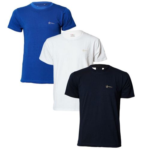 Unisex 3-Pack Round Neck Heavy Duty Cotton T-Shirts – Navy Blue, White & Royal Blue