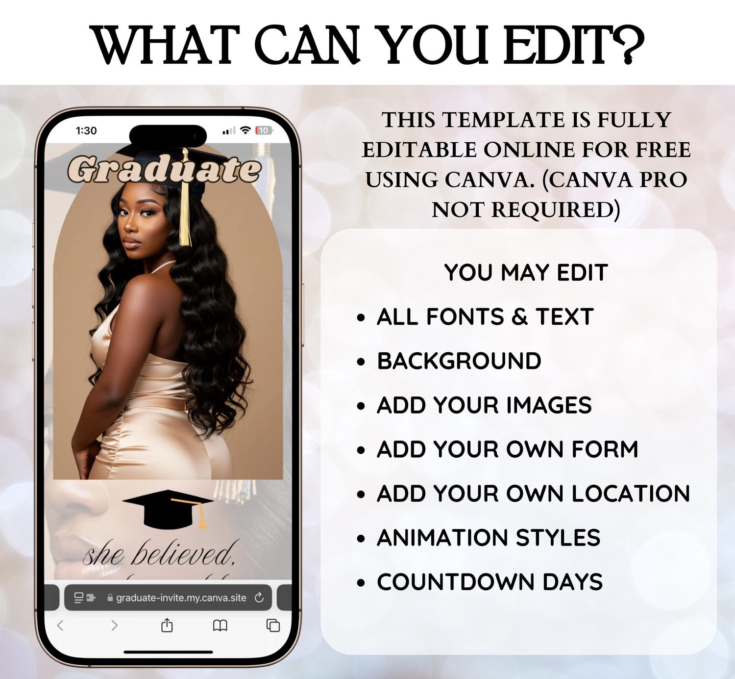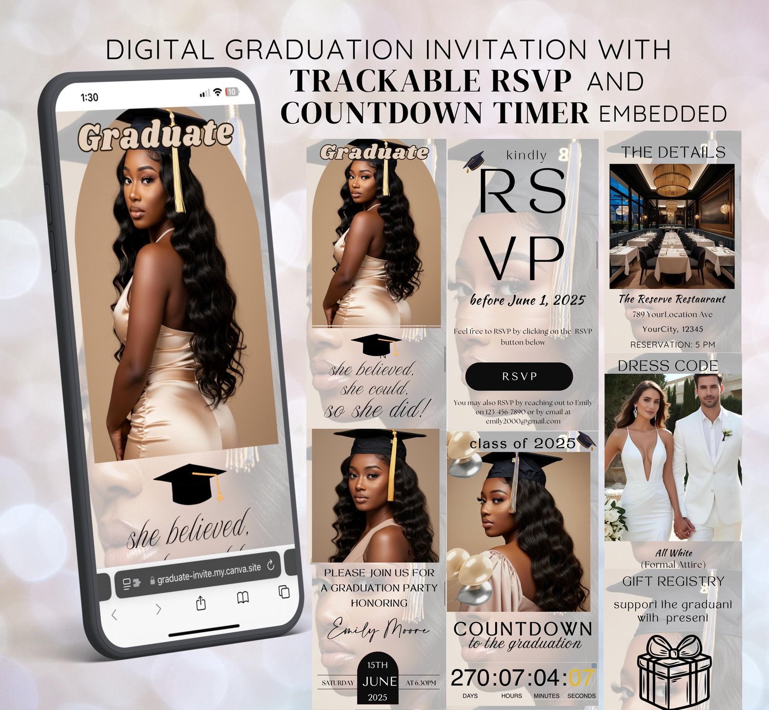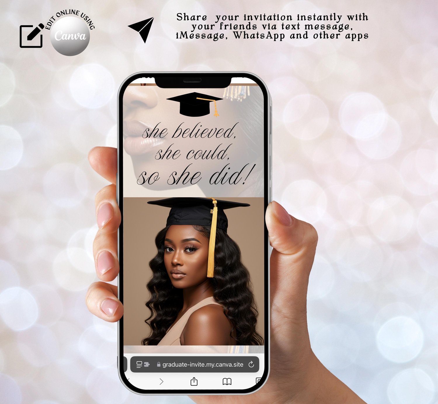 โจ Perfect for grads who want a hassle-free, modern, and stylish way to invite guests! Simply edit, share, and celebrate! ๐