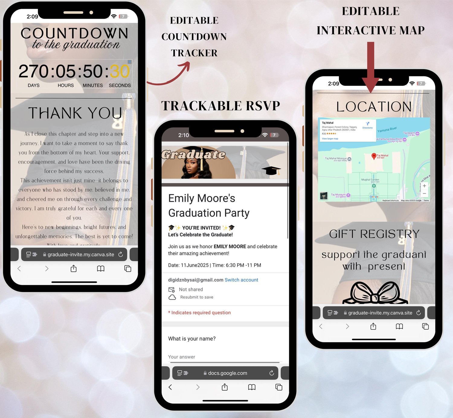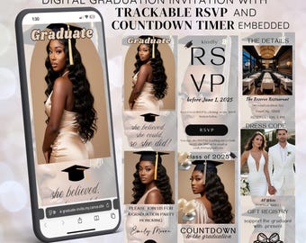 Make your graduation celebration unforgettable with this modern and interactive web invitation template! Designed for convenience and style, this fully customizable digital invite features an embedded countdown timer, trackable RSVP form, and an interactive mapโall in one seamless design.