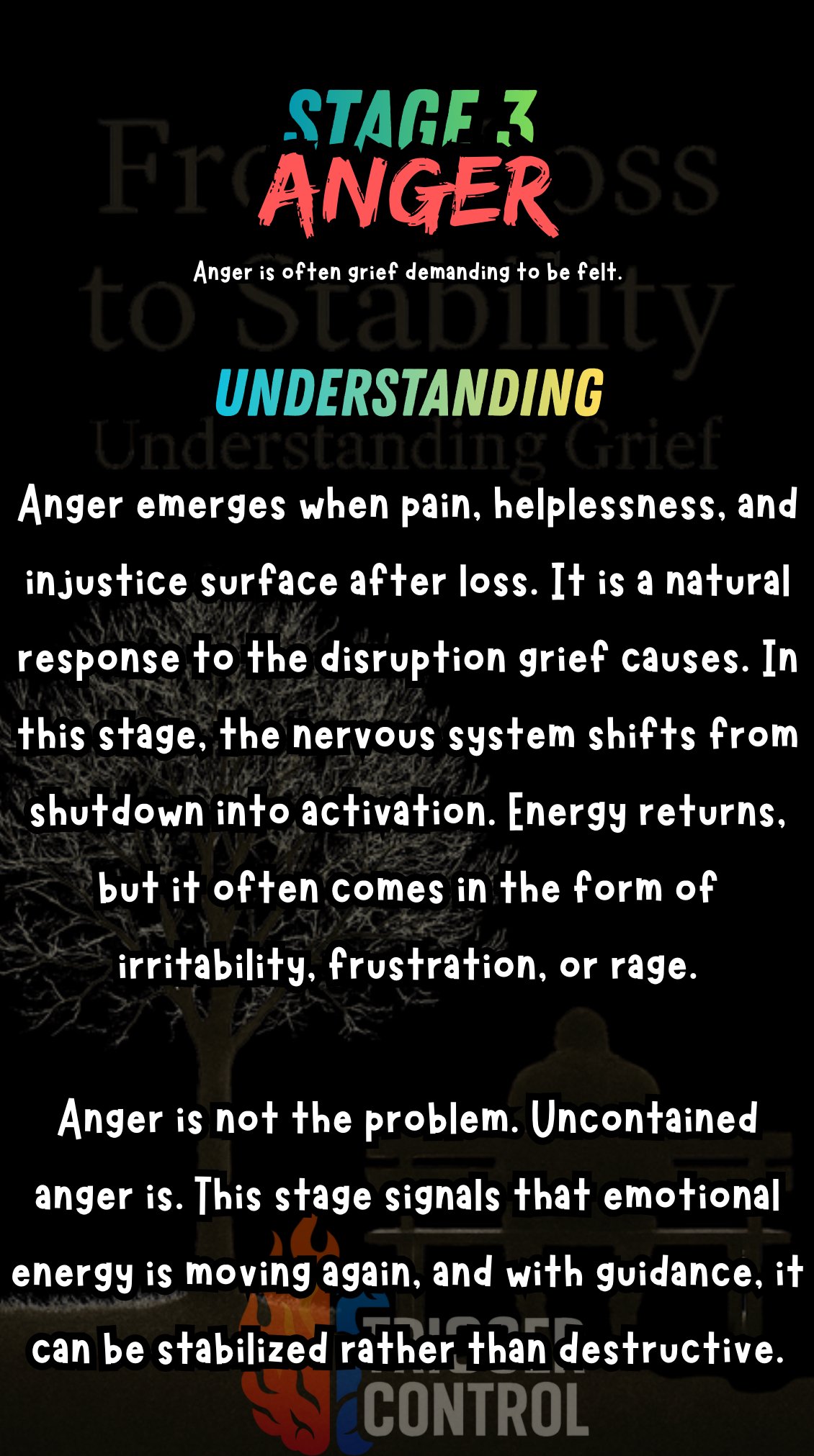 Each stage explains what is happening internally, why the response exists, and how to stabilize when emotions feel overwhelming. Every stage includes grounding techniques, practical strategies, and reflective guidance to help restore emotional balance at your own pace.