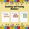 The worksheets incorporate pictures alongside the numbers, allowing children to practice counting as they trace.