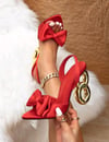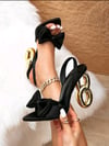 Women's Fashion Black Satin Pointed Toe One-Piece Bow Strap Golden Asymmetric High Heel Party Sandals Valentines
