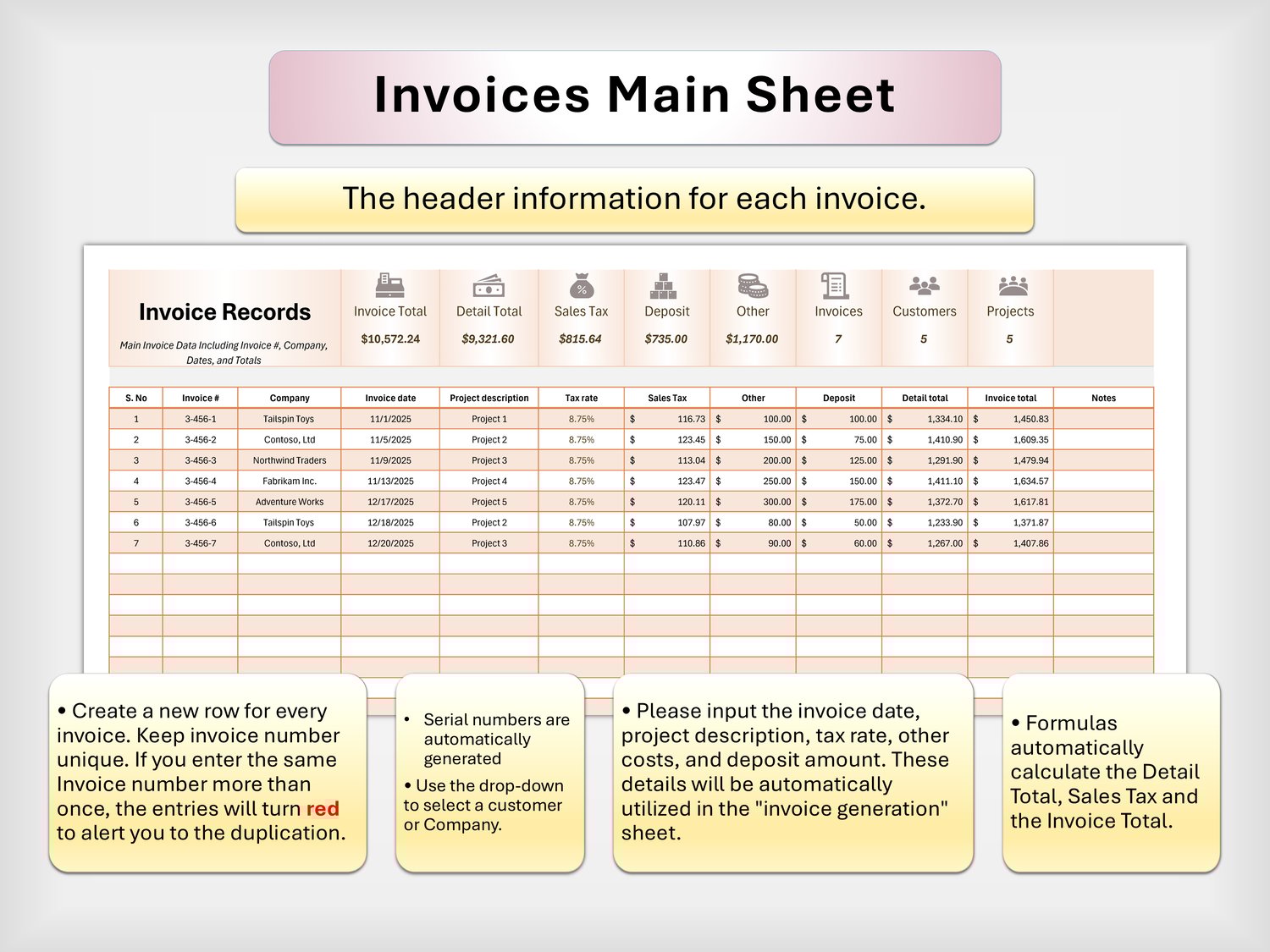 * Excel Template for Tracking Sales Invoices Works with Excel 2021 and later versions