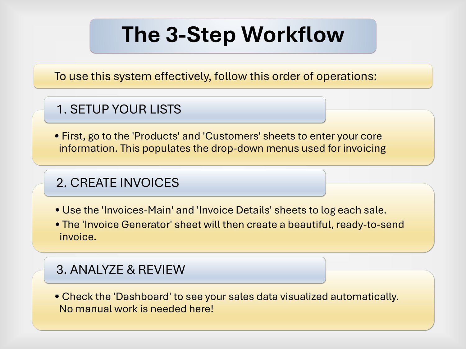 Sales Invoice Tracker Excel & Google Spreadsheet Template | Generator, Customer, Product Management Automated Dashboard