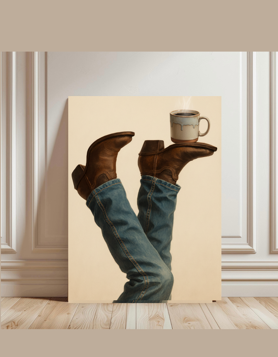 How to use: Simply download, print on your preferred material, and frame for instant printable wall art. Great for DIY projects, gifts for coffee enthusiasts, or enhancing your coffee bar setup. Search terms like cowboy boots art, coffee mug decor, and digital printable western make this a must-have for fans of unique, handmade-inspired designs.
