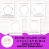 Basic Shapes Tracing, with 3 to 12 sided shapes, Preschool Worksheets, Kids Activities, Preschool Learning, Instant Download