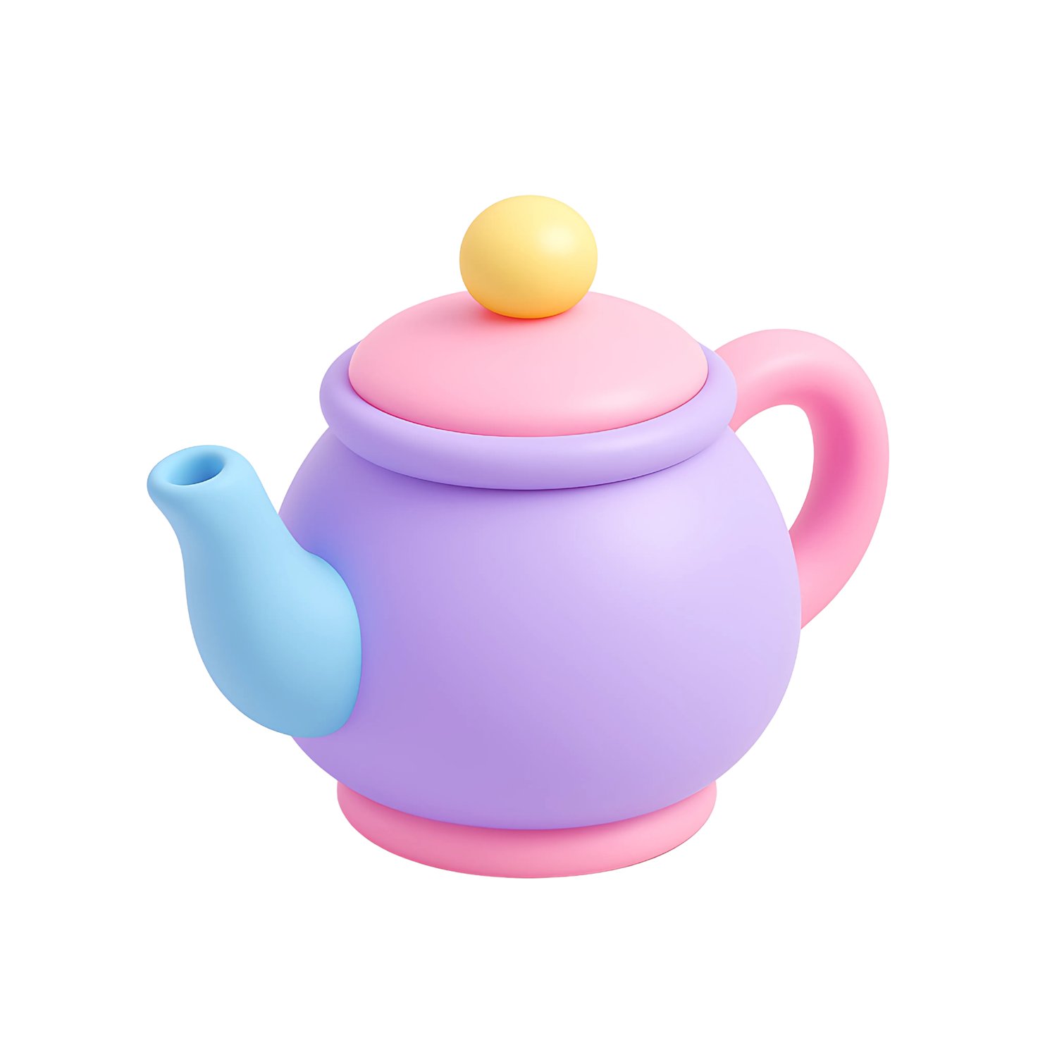 Cute 3D Cartoon Teapot Illustration in Pastel Colors