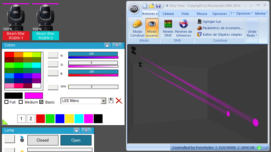 Esta Librería SSL2 está optimizada para trabajar con Magic 3d Easy View. Es decir para ver una representación 3D de las secuencias que estemos realizando con Freestyler, QLC+ o cualquier otro soft que se conecte con Magic 3d.