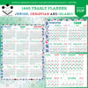 The Christian (Gregorian) calendar is used world-wide as the universal calendar for business, much like English is a universal business language. The Jewish and Islamic calendars are still in use today by members of those faiths and in certain countries. As a result, calendars combining one of these with the Gregorian calendar are readily available, but this calendar combines all three so we can all use the same one.