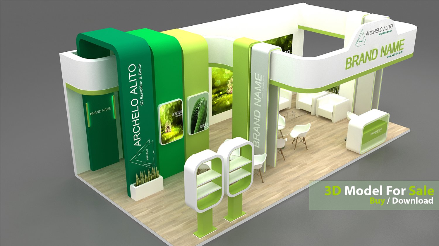 This professional 3D booth model is designed for exhibitions, trade shows, expos, fairs, and event displays.
