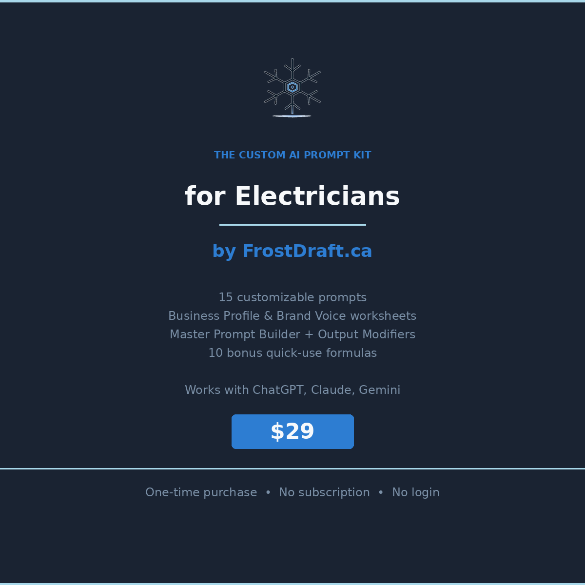A customizable AI prompt system for electricians who want faster, cleaner, more effective marketing content.