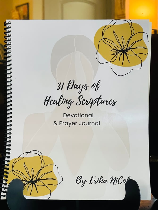 31 Days of Healing Scriptures Devotional and Prayer Journal is a collection of healing scriptures placed in a specific layout to help you learn, meditate, journal, and pray the word of God.