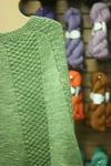 There is the smaller size (5 skeins Madeline Tosh Chunky) which fits people who wear up to a size 12 shirt and a larger size (8 skeins Madeline Tosh Chunky) which you will customize with your increases as you go along (all very carefully explained.)