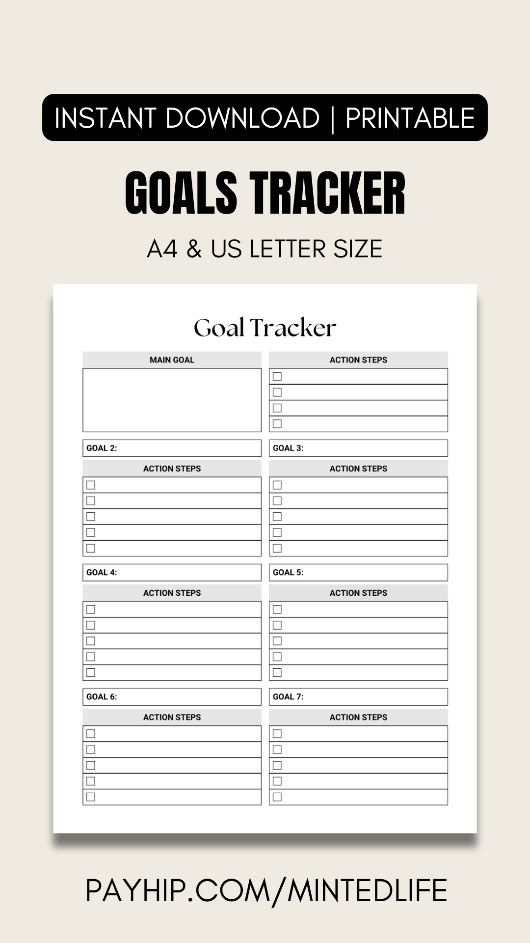 Goal Planner, Goal Setting, Goal Progress, Minimalist Planner, A4/UsLetter, Printable PDF Instant Download