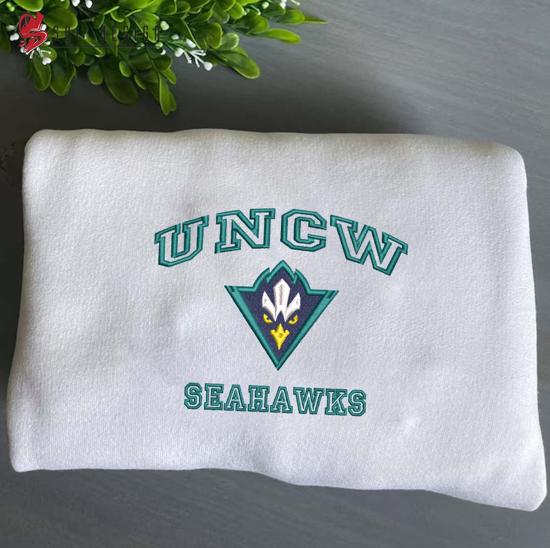 NCAA UNC Wilmington Seahawks College Football Team Embroidered Crewneck, UNC Wilmington Football Embroidered Sweatshirt, NCAA UNC Wilmington Seahawks Team Sweatshirt, Game Day Embroidered Hoodie, T-shirt