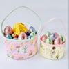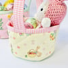 PDF sewing pattern and photo tutorial to make a Honeybun basket, a basket pattern in 2 sizes. Perfect with a handle for collecting yummy treats, these also work well without the handle for storage of small items around the house.