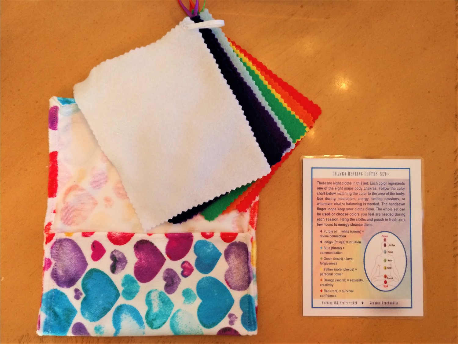 Chakra imbalance. Emotional imbalance. Disharmony affects health. It happens to all of us and at times we need tools to help realign and balance these energy vortexes within us so our energy systems can get back to doing what they do best. Harmonize and offer good health. My Chakra Balancing/Healing Cloths can help you get back in balance. This set is easy to use and the cloths come in a handy carrying pouch.