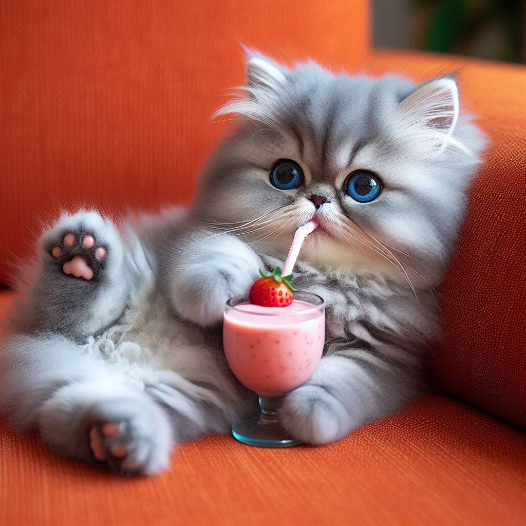 在小胖波斯貓把自己非常滿意的私藏貓姿照片在它的波斯貓家族做了個自豪的分享之後! 引來了一陣嘩然!它的表妹藍絲貓! 觀看之後,不斷的吵着的她的小主人也給她拍了一張她撒嬌模樣喝草莓沙冰還高舉展视小脚high five 照的模樣! 不知道觀眾朋友們有和看法?