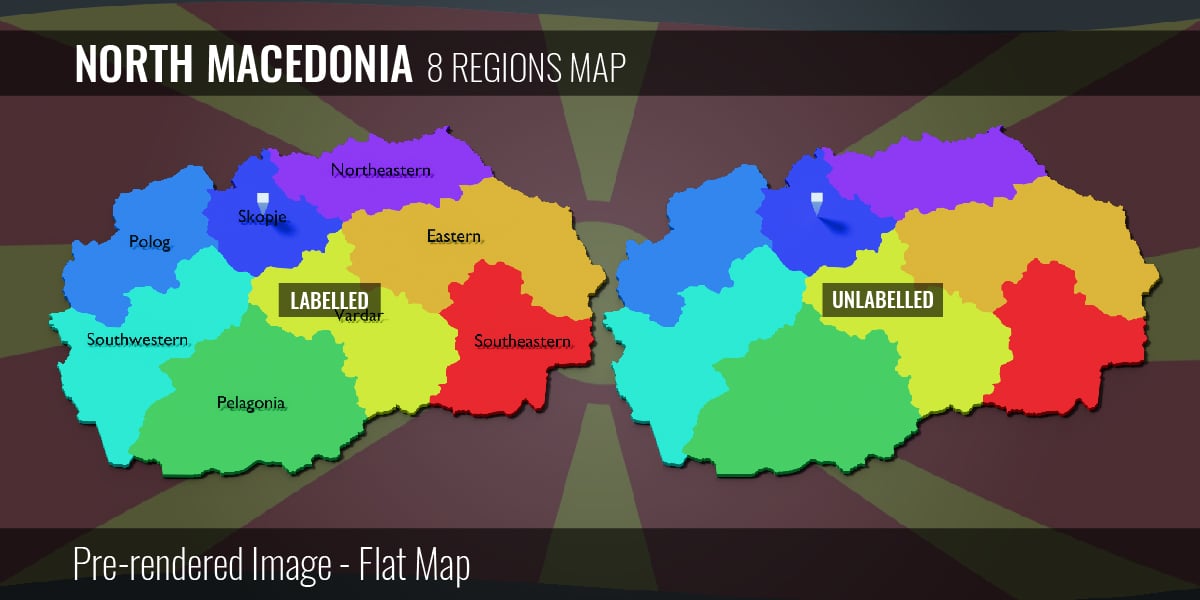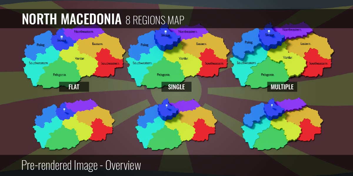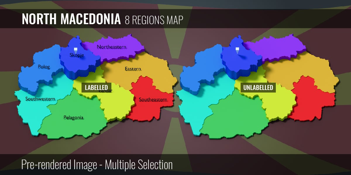 North Macedonia - 8 Regions Map (3D + Pre-rendered Images)
