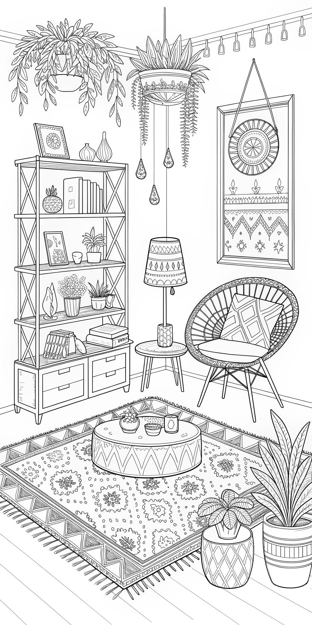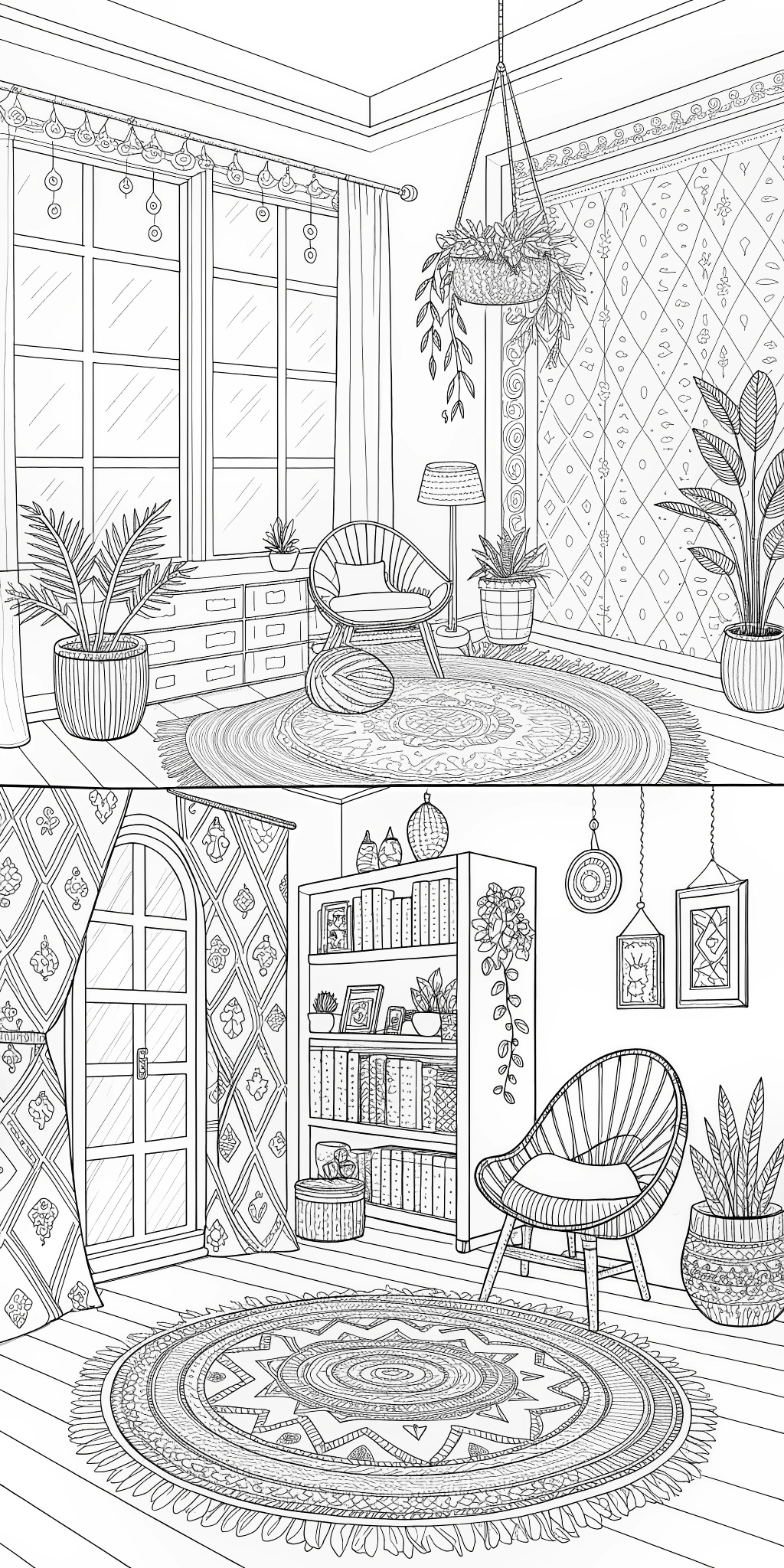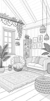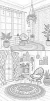This beautifully illustrated coloring book features 65 detailed pages of warm, aesthetic boho room scenes filled with chic furniture, layered textures, plants, macramé, rugs, and calming interior spaces — all designed to help you relax, unwind, and reconnect with your creativity.