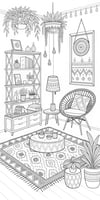If you love boho home decor, cozy interiors, stylish furniture, and relaxing creative activities, this 65-page Boho Room Coloring Book for Adults is made for you.