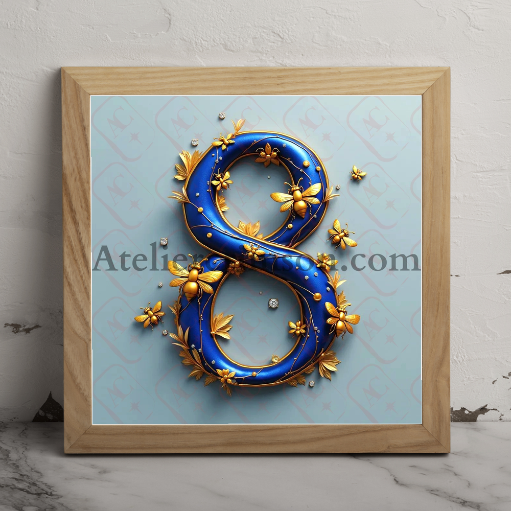 Number 8 royal blue bees Download Now this high quality AI-generated image, perfect for adding a touch of tranquility and creativity to any space.