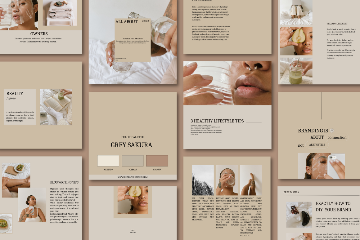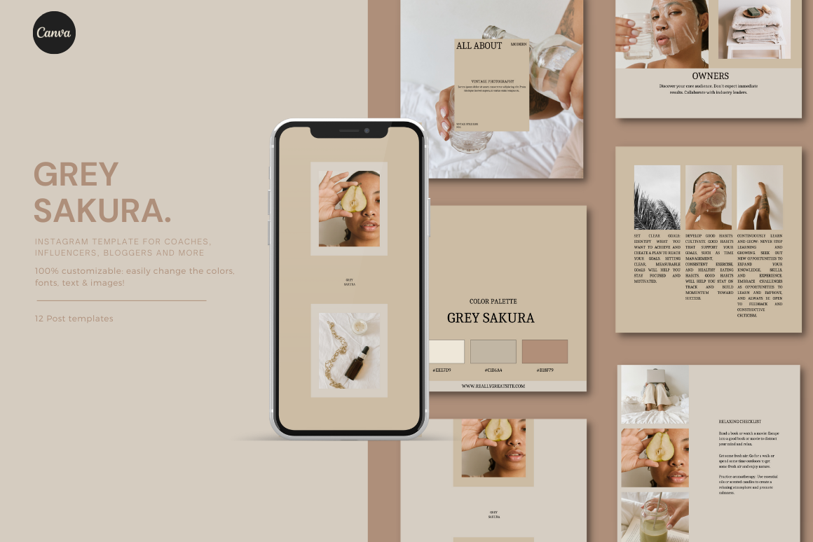 Grey Sakura | 12 CANVA Instagram Post Templates | Minimalistic templates | Neutral colors