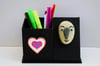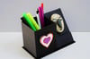 It is then glued on a black box with a leather like surface that serves as a Pen Holder.