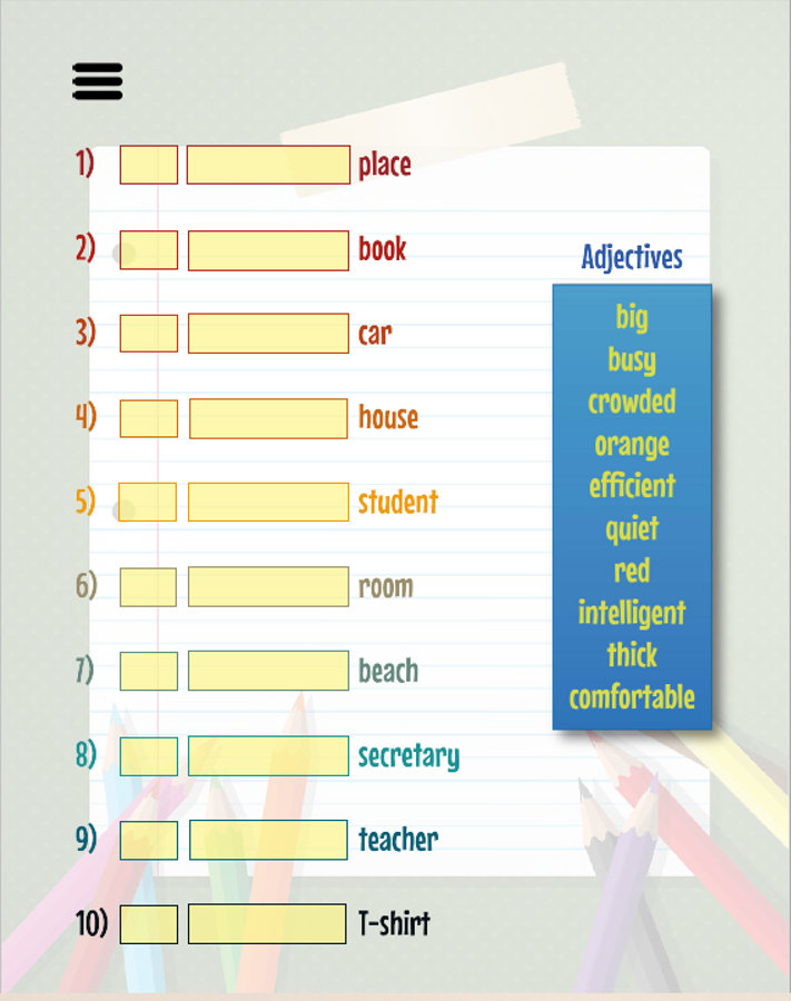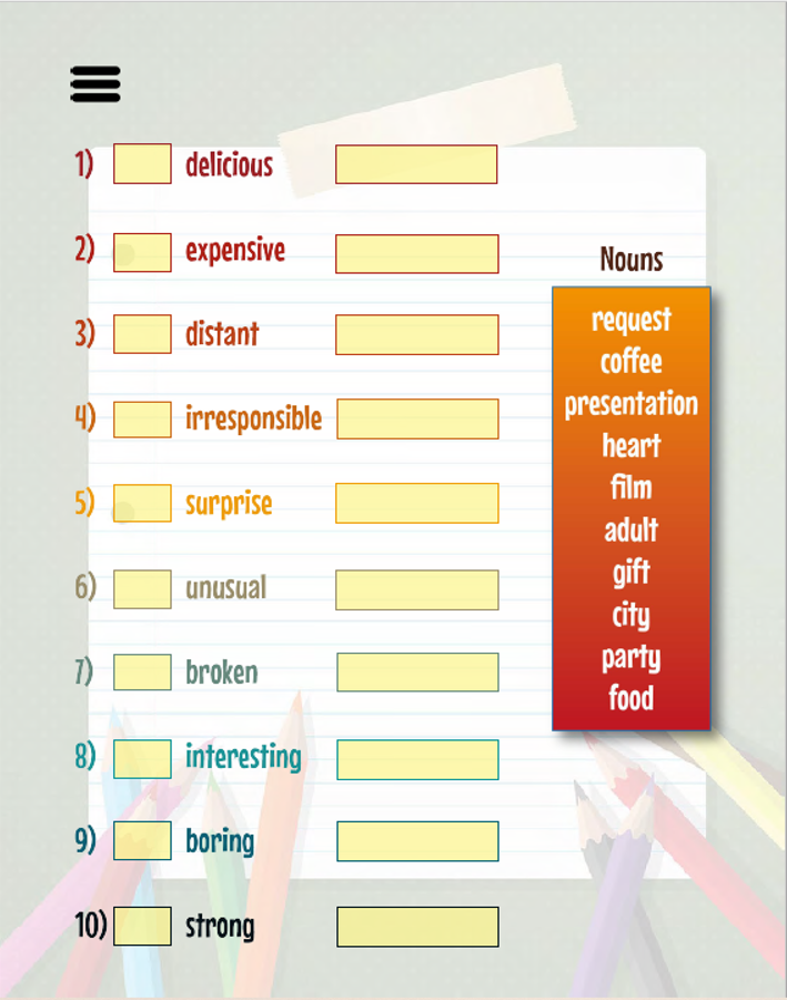 PDF Content: Interactive English exercises. Topic: Adjective+Noun