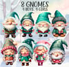 Christmas gnomes plus gnome house. 4 girls and 4 boys clipart bundle for you to make up your own family, or use individually on cups, baubles etc.