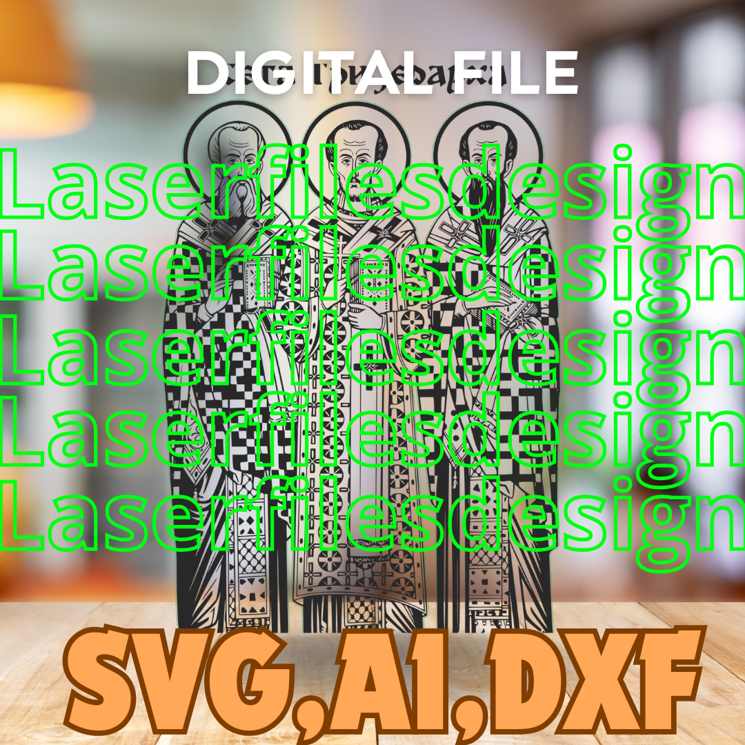 Sveta Tri jerarha - Digital File SVG,AI and DXF ,File for Laser Cutting and Engraving