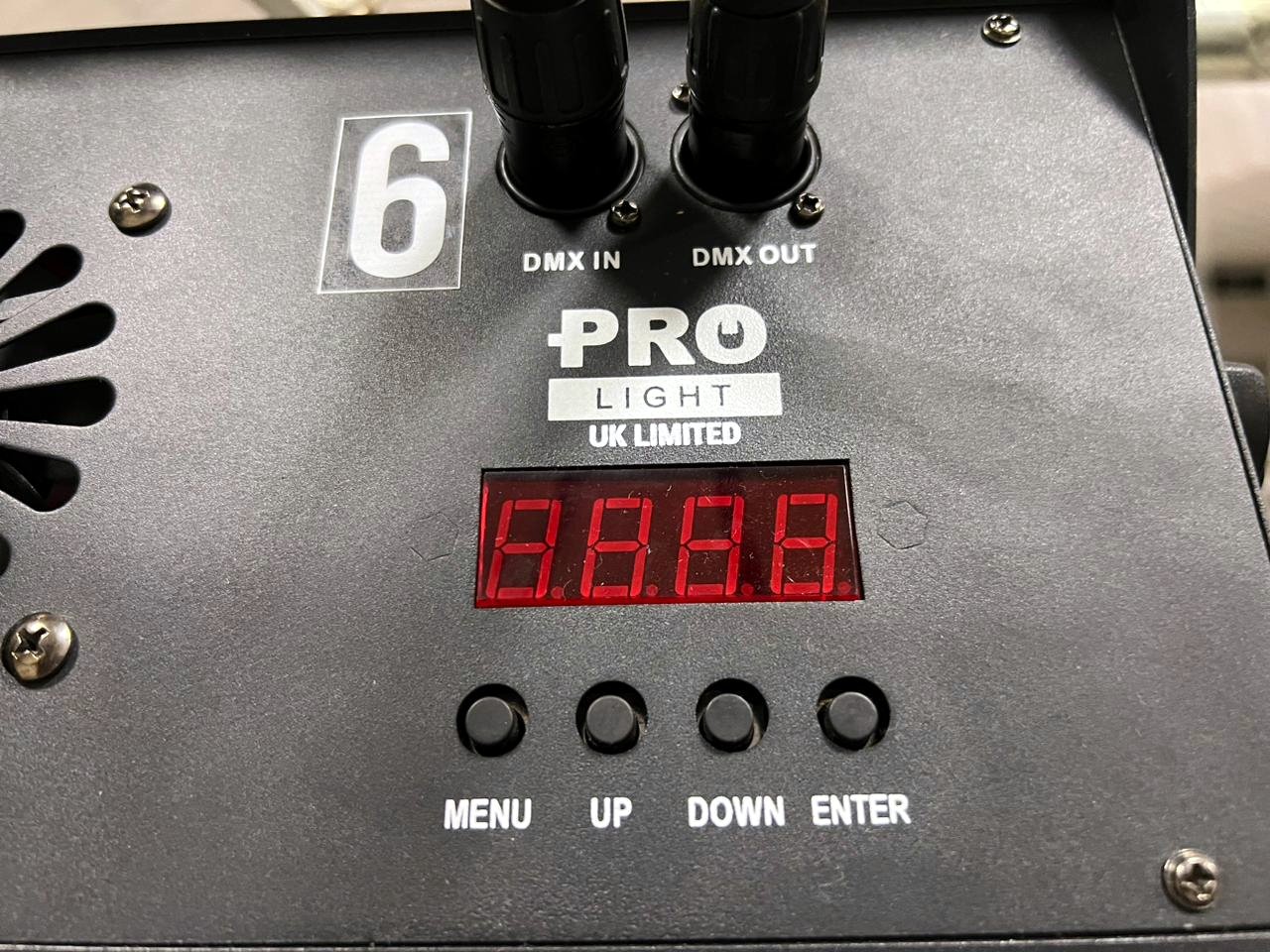* Verifique en el display del equipo, que muestre los modos dmx: 4H, 6H, 12H, 144H y 154H (ver cuarta foto).