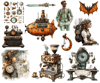 Steampunk Digital Paper, Steampunk PNG, Steampunk Clipart, Victorian Steampunk Papers, Steampunk Digital Download, Steampunk Ephemera, Industrial Grunge Paper