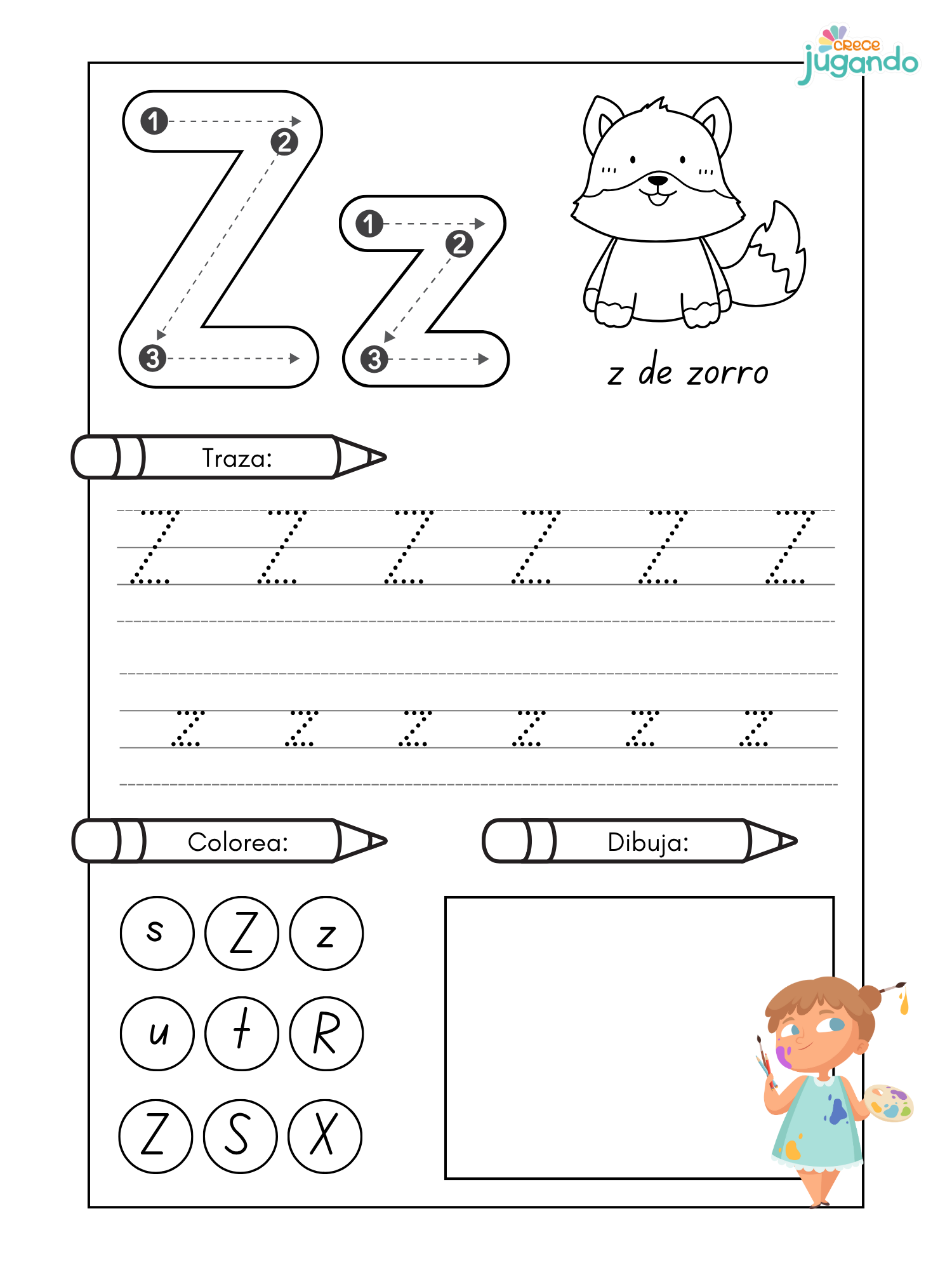 - Cuaderno de actividades con más de 25 páginas (una por letra)