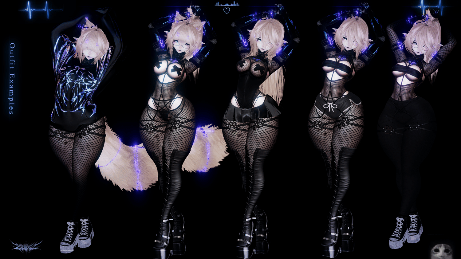 ⭑ Accessories - Ears/Tail, Arm Belt, Chest Harness, Chest Piece, Collar/Hip Harness, Garters, Glasses, Necklaces, Nails, Fishnet Bodysuit