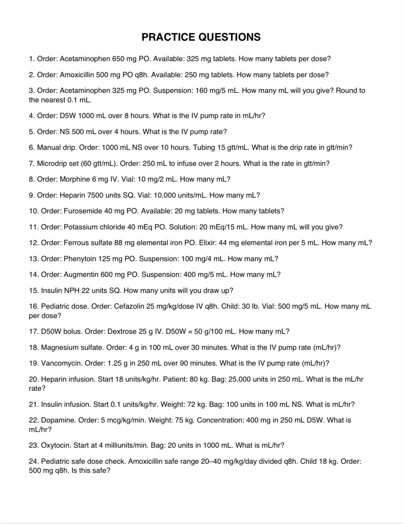 - Dosage calculation formulas with 50+ practice questions and full step-by-step answer key